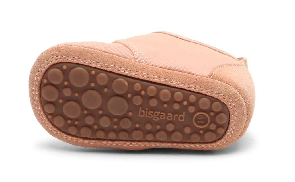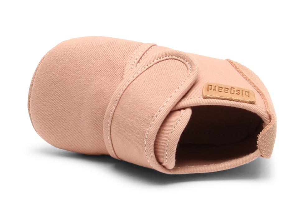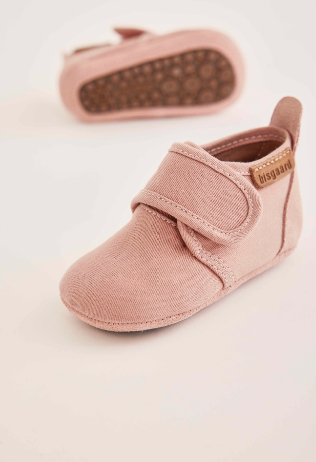 Bisgaards "Baby Cotton"-Hausschuh in der Farbe Nude hat eine feste Fersenkappe, die gerade bei den Füßen der Kleinsten für einen korrekten Halt an der Ferse und um den Knöchel sorgt. Durch die rutschfeste und flexible Gummisohle gehört Ausrutschen der Geschichte an. Zudem lässt sich der Schuh durch den Klettverschluss leicht an den Fuß anpassen und das Kind kann sich den Schuh eigenständig an- und ausziehen.