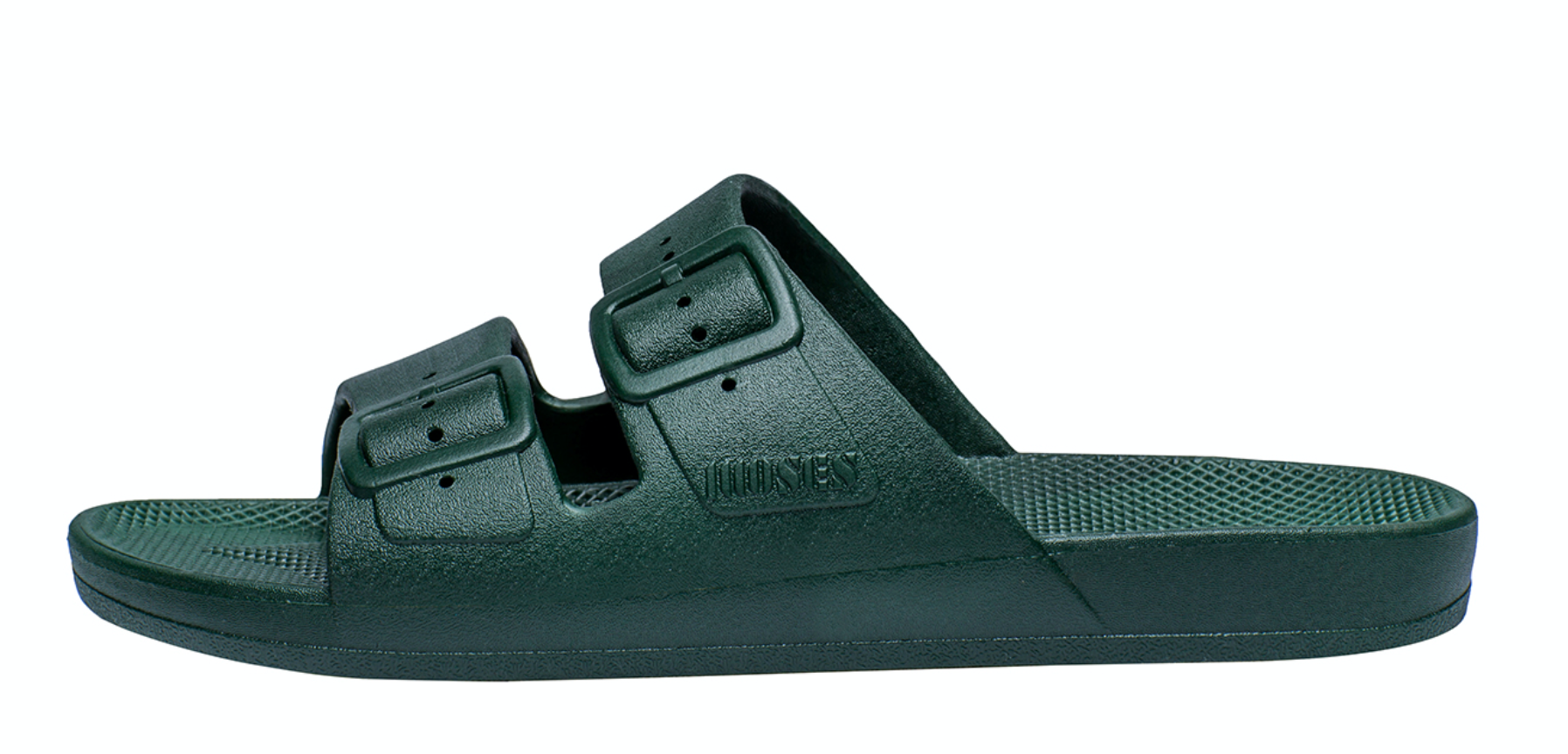Die kultigen Slides von MOSES sind recycelbar, wasserdicht, waschbar, tierfreundlich, riechen nach Milch und Honig und sind so bequem, dass Du sie im Winter mit Socken tragen möchtest.
