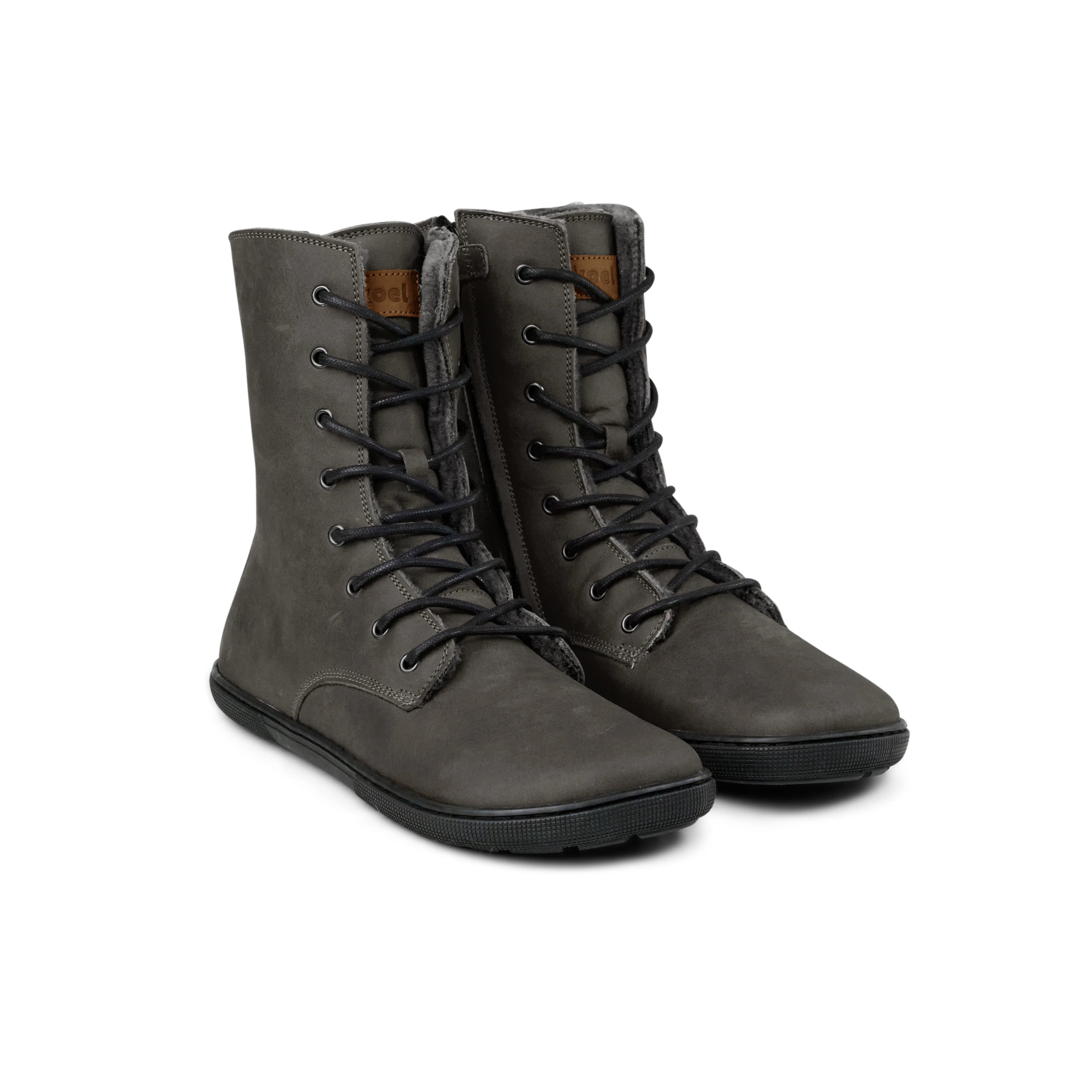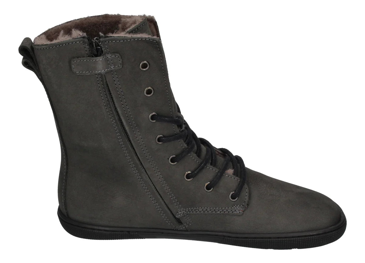 Koel Women Barefoot Faro Dark Grey Schnürstiefeletten mit Reißverschluss & Lammfell