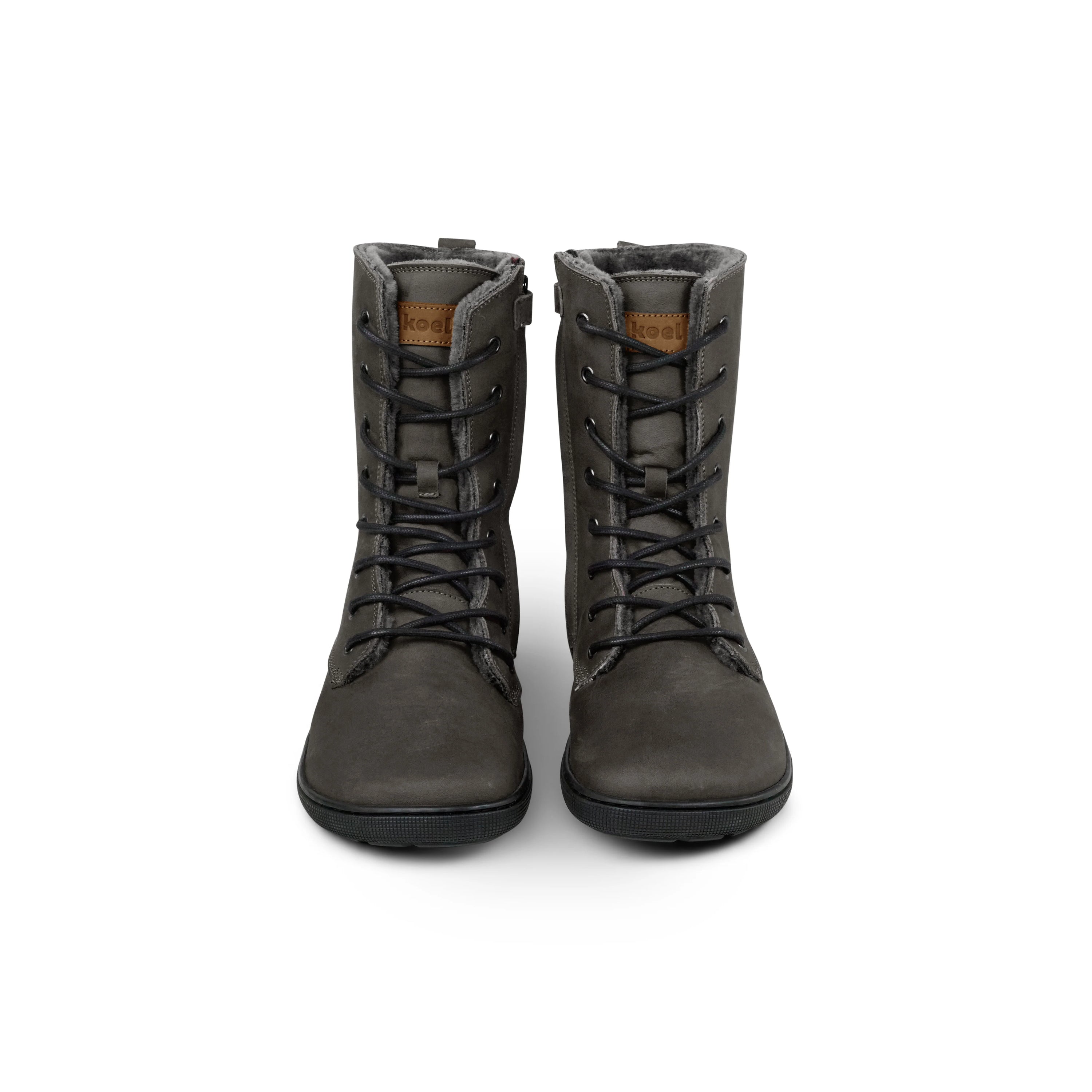 Koel Women Barefoot Faro Schnürstiefelette mit Reißverschluss Dark Grey Lammfell-Futter