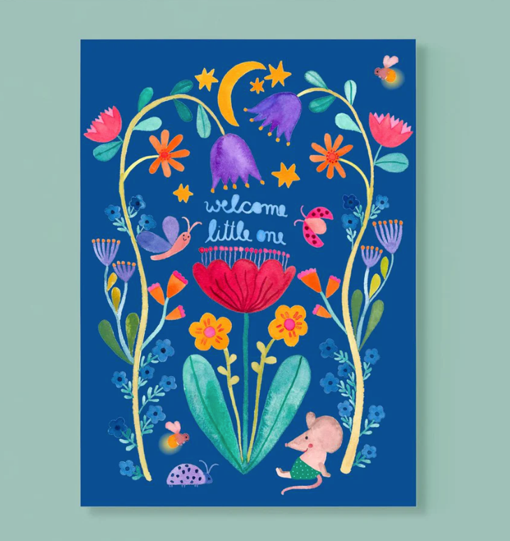 Frau Ottilie Postkarte zur Geburt "Welcome Little One" Blumenwiese