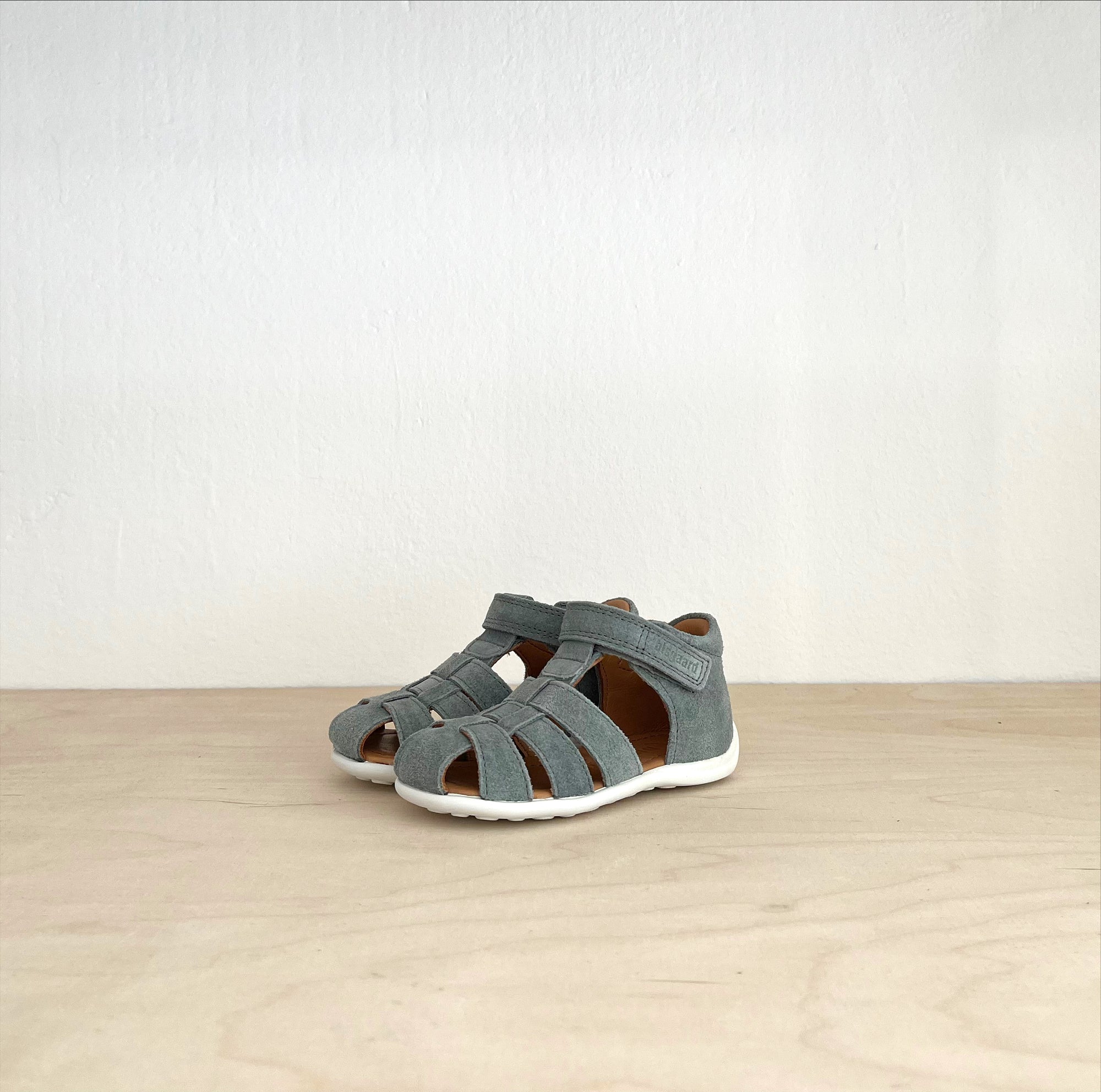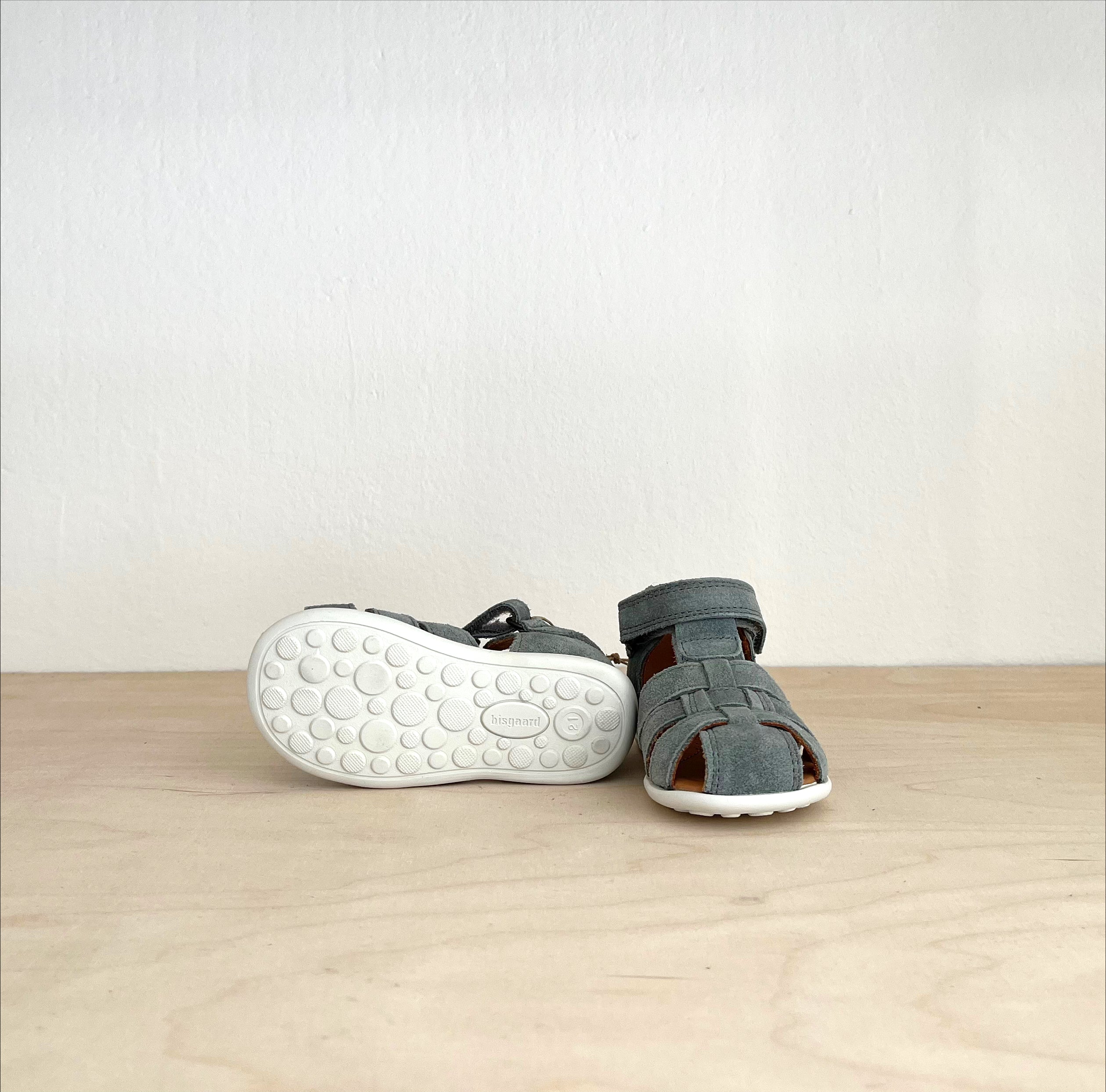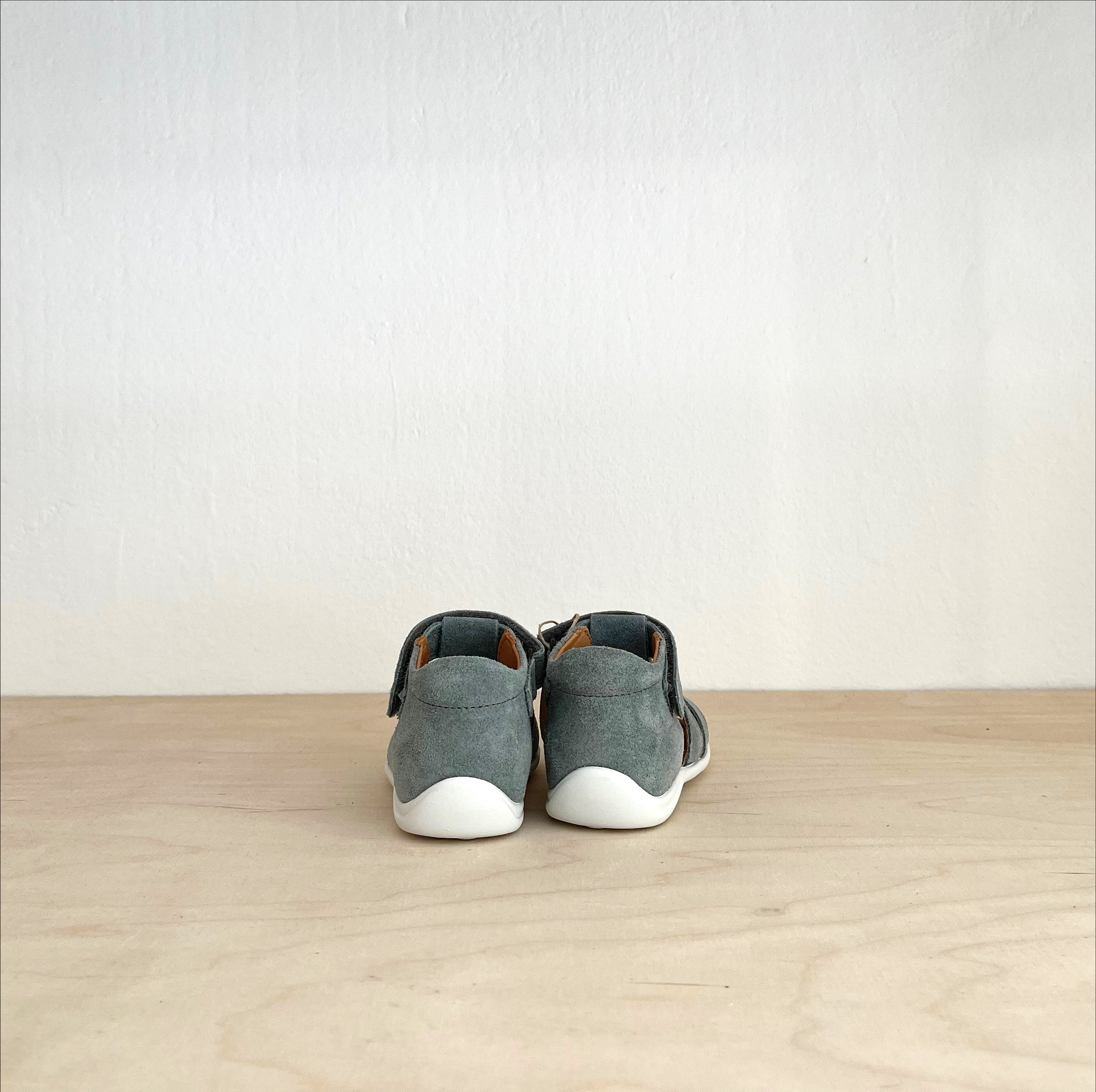 Eine schöne Lauflerner- Sandale mit Schutz für die Zehen im vorderen Bereich. Individuell anpassbar durch den Klettverschluss. Die rutschfeste und flexible Gummisohle bietet Komfort für den ganzen Tag. Material: Leder; Made in Portugal