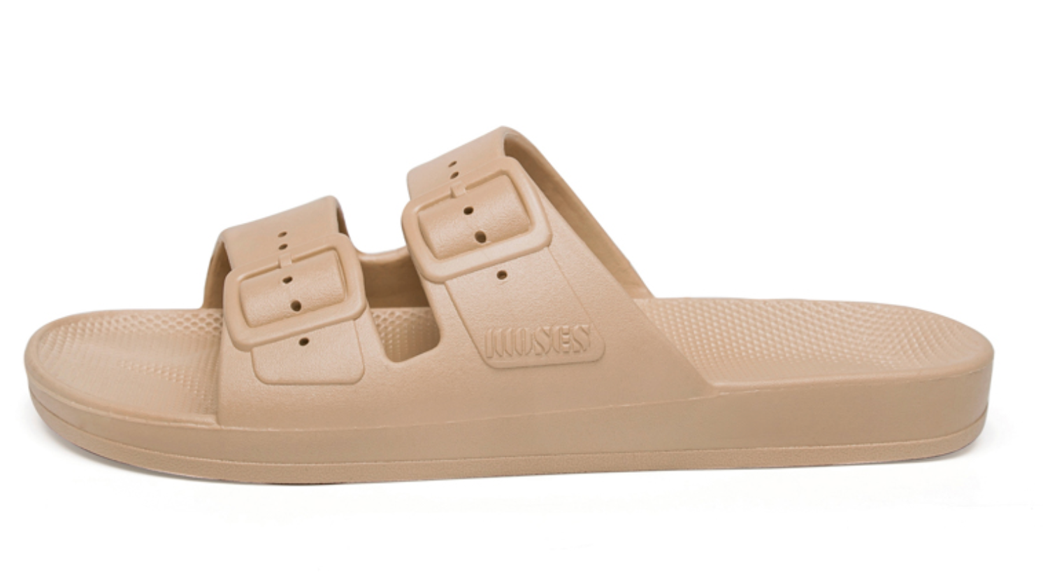 Die kultigen Slides von MOSES sind recycelbar, wasserdicht, waschbar, tierfreundlich, riechen nach Milch und Honig und sind so bequem, dass Du sie im Winter mit Socken tragen möchtest.