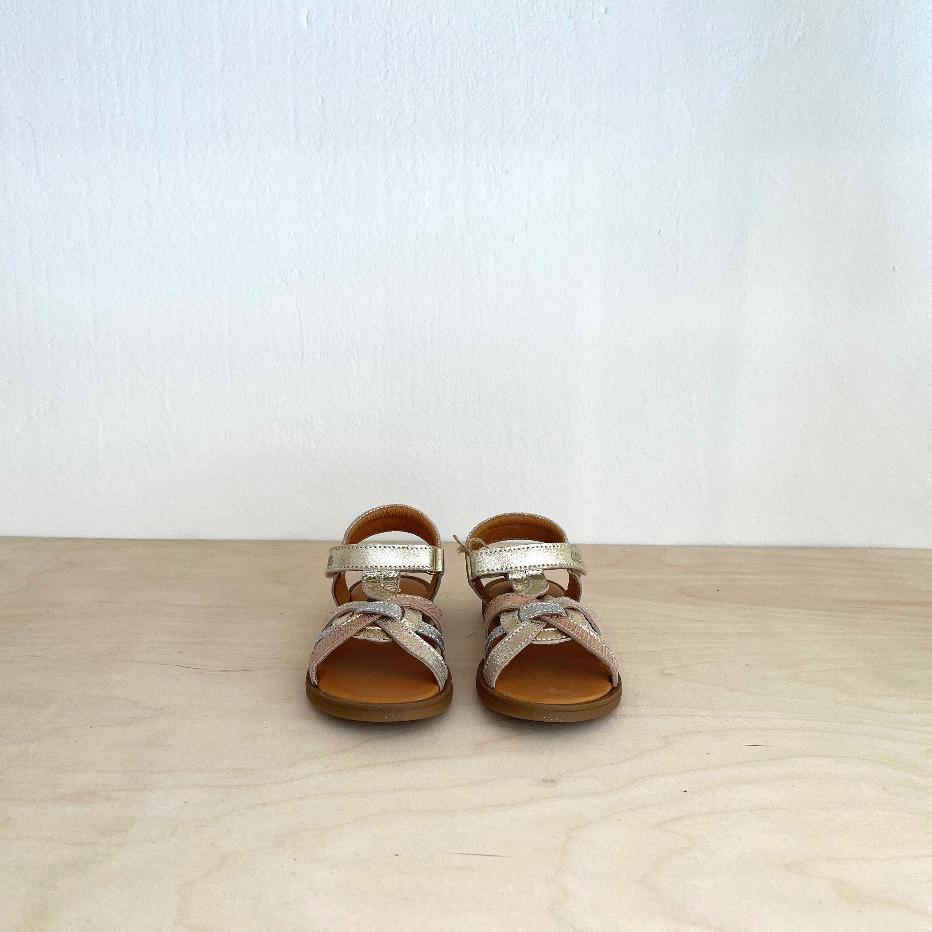 Diese Sandalen der französischen Marke GBB sind an der Verse durch Schaumstoff gepolstert und bestehen aus Leder und synthetischen Materialien.