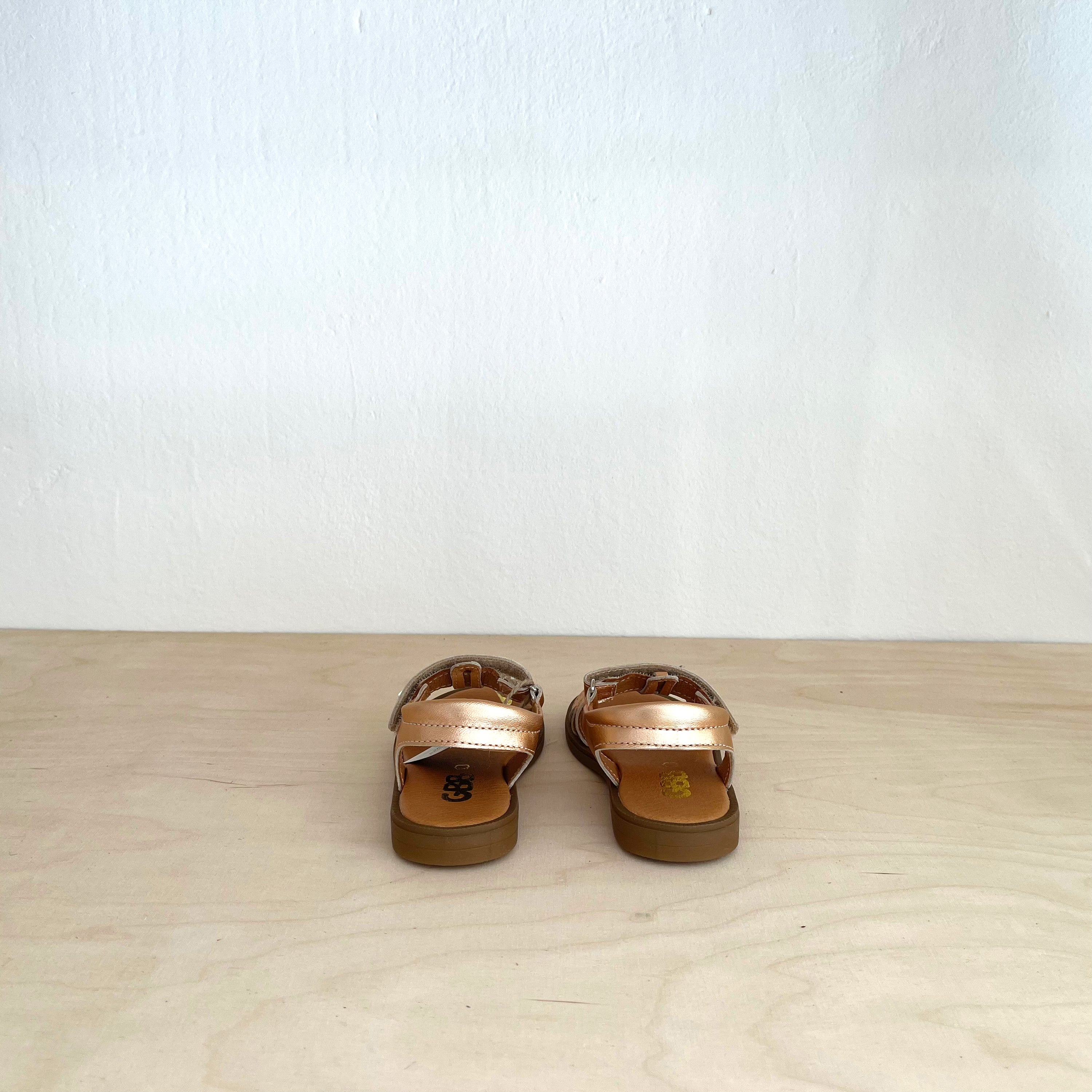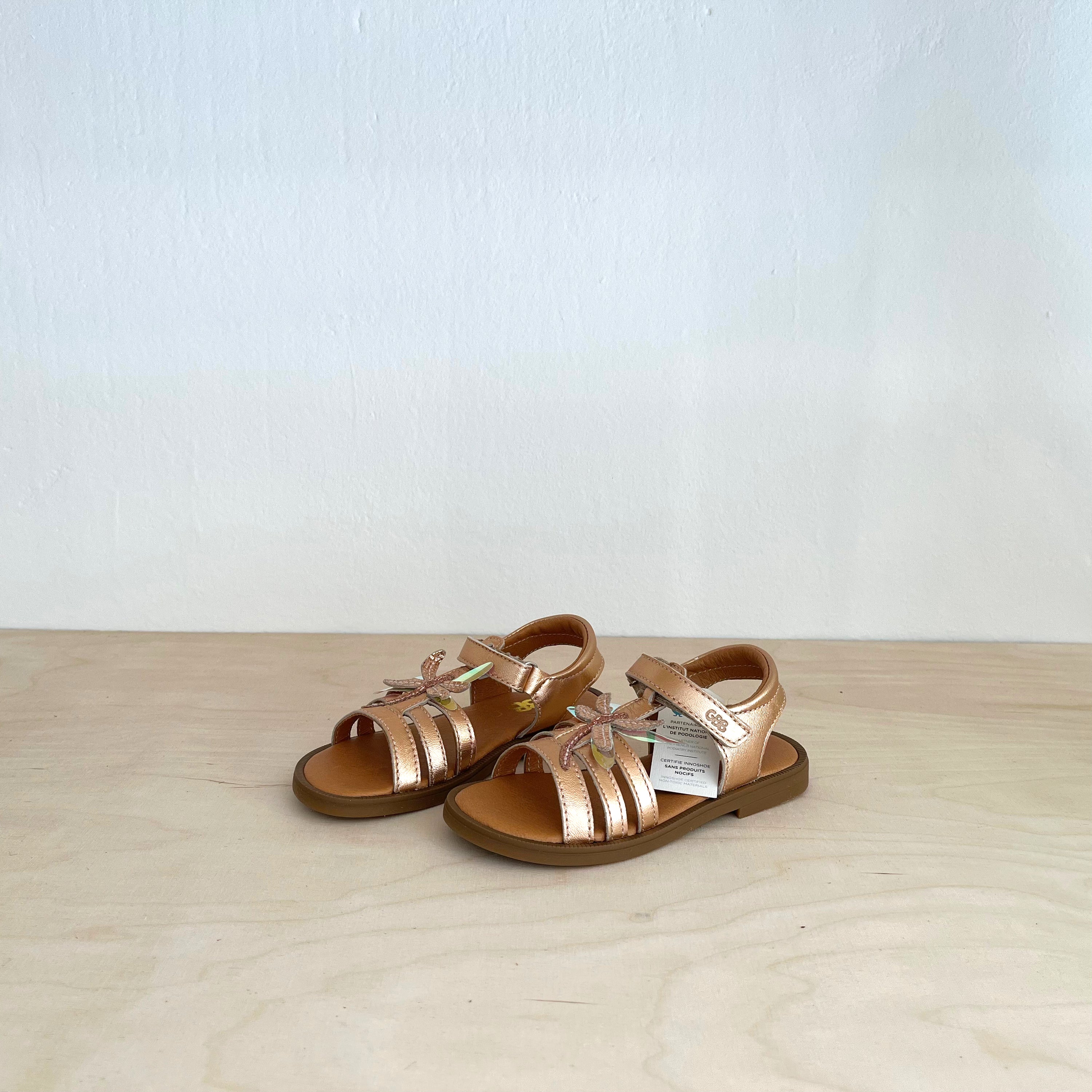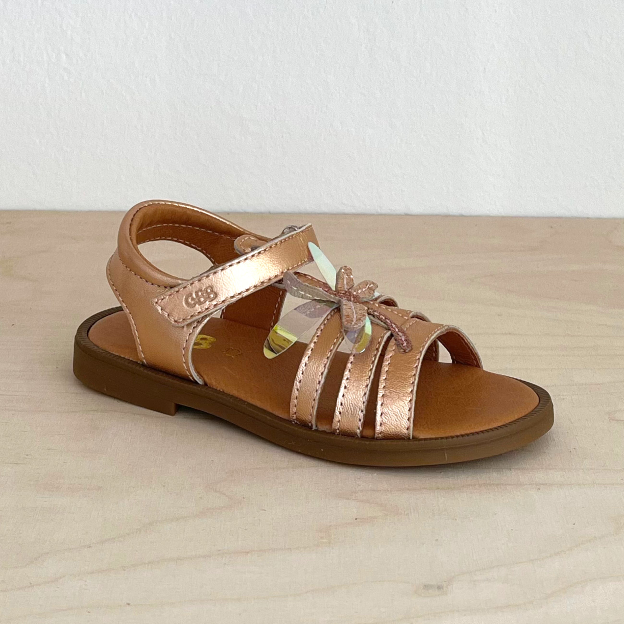 Die Libellen-Sandalen der französischen Marke GBB sind an der Verse durch Schaumstoff gepolstert und bestehen aus Leder und synthetischen Materialien.