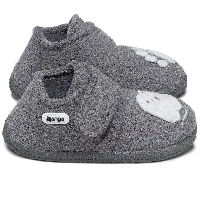 Nanga Leila 2.0 Little Polar Bear Grau Weiche Hausschuhe aus Schurwolle mit Klett