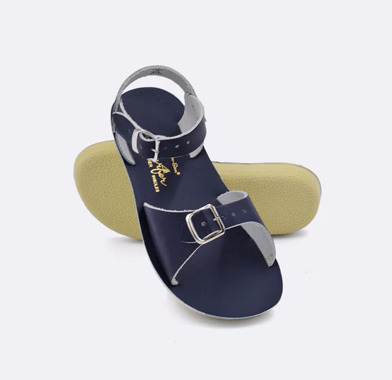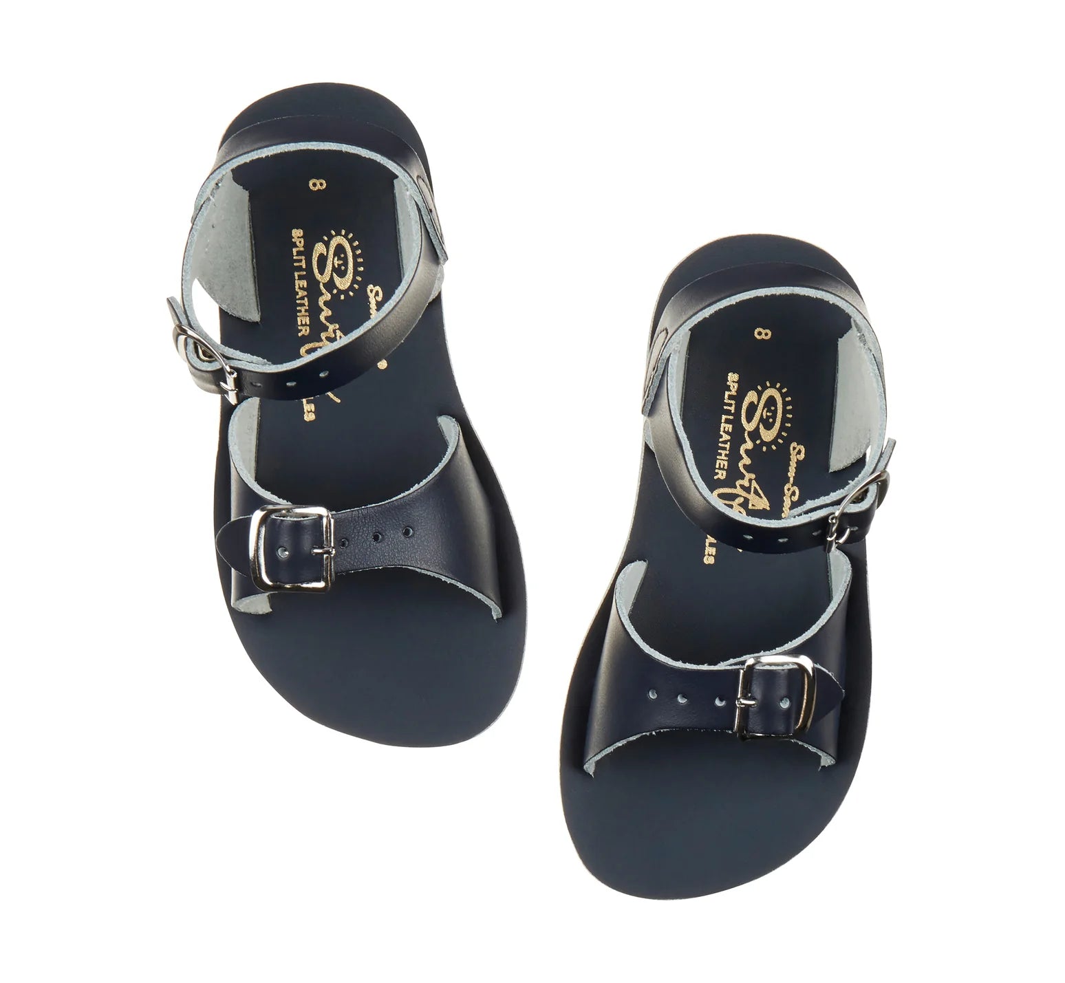 Saltwaters Surfer Sandalen lassen sich mit ihren zwei Riemen und Schnallen perfekt an die breite jedes Kinderfußes anpassen. Im keks. haben wir die Sandalen in den Farben Navy und Tan, die sich farblich super kombinieren lassen.