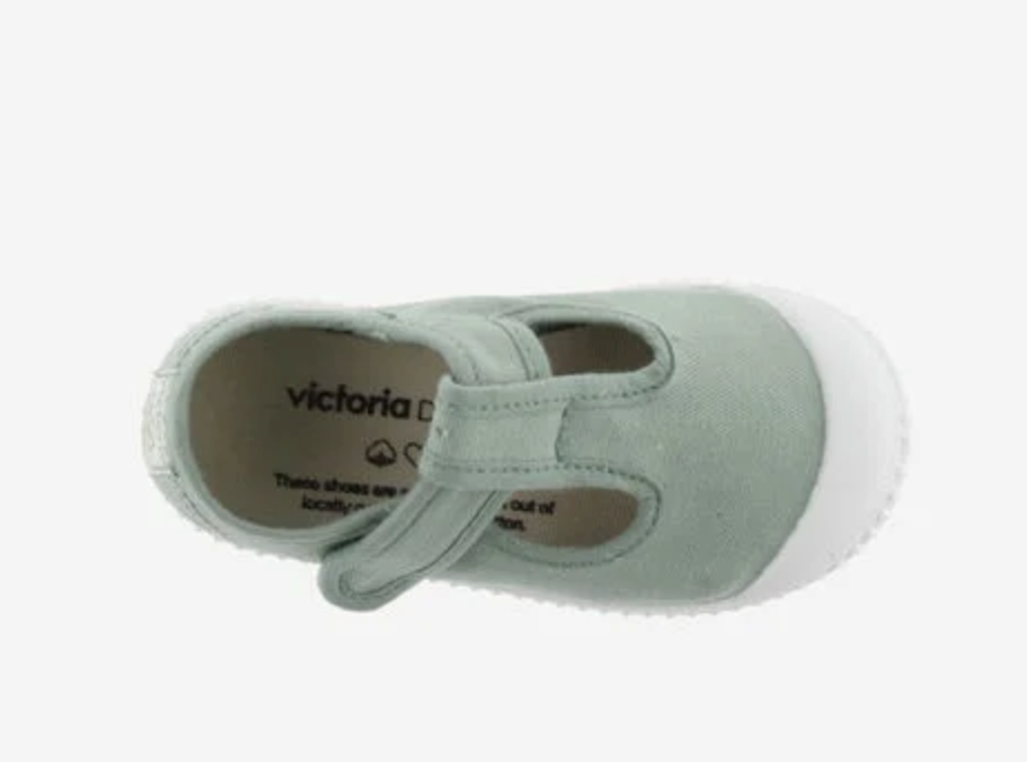 Victoria Vegane Baumwoll-Sandale Jade mit T-Spange + Klettverschluss