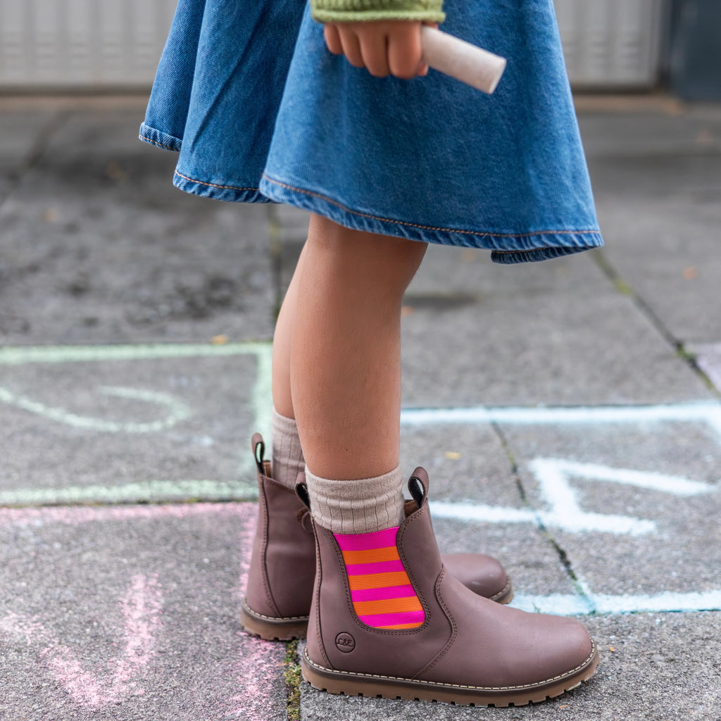 Die Chelsea Boots in Pink/Orange von Lotta & Emil überzeugen mit ihrem besonders robusten, gewachsten Glattleder und der eigens entwickelten Profilsohle ohne Absatz. Dank dem Reisverschluss mit dem großen Zipper können selbst die Kleinsten schnell und einfach in ihre Boots schlüpfen.