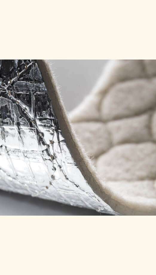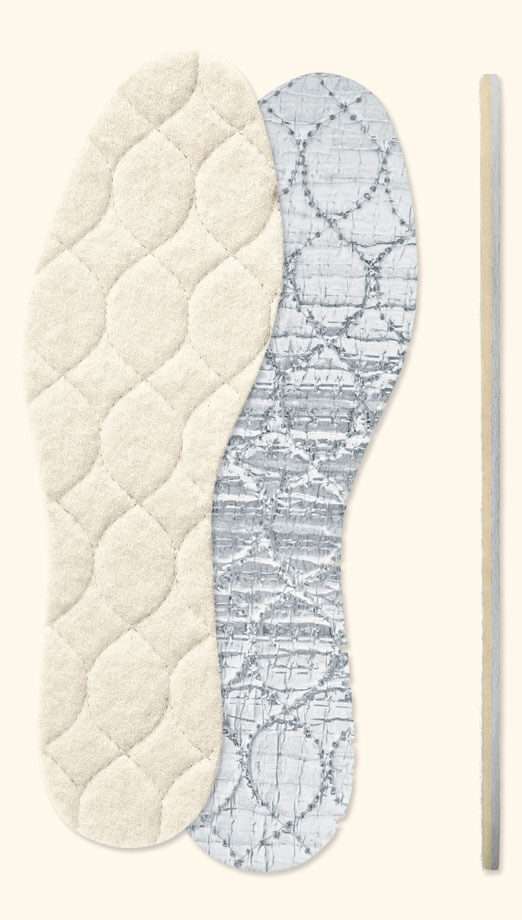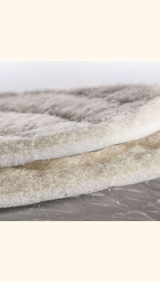 Aus den besten Zutaten: 100% Lammwolle wärmt direkt die Füße, ein geschlossenporiger Schaum mit zigtausend Mikro-Luftpolstern isoliert gegen Bodenkälte wie ein Thermopenfenster.