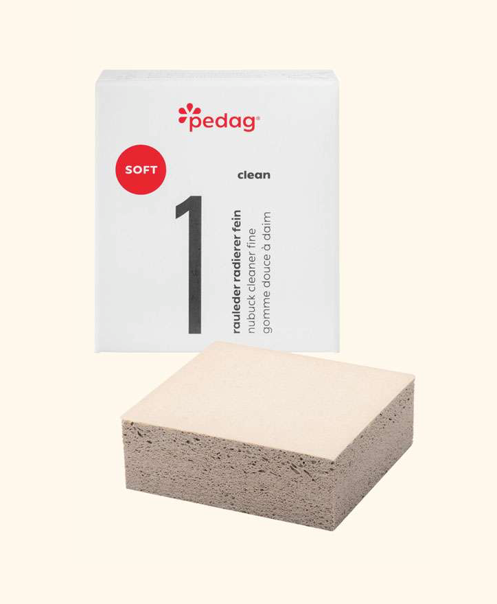 Der pedag Rauleder Radierer Fein entfernt oberflächliche Flecken auf feinem Nubukleder und eignet sich für Schuhe, Taschen und Kleidung. Perfekt, wenn du es einmal eilig hast und keine Zeit bleibt für eine gründliche Reinigung.