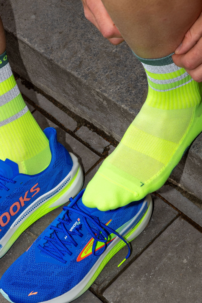 ob frühaufsteher oder nachtschwärmer – mit diesen socken bleibst du stilvoll sichtbar. leuchtende neonfarben sorgen tagsüber für auffällige akzente, während drei 360° reflektierende bänder dich bei schlechten lichtverhältnissen sicher sichtbar machen. das innenfutter der bänder ist ultrasoft für ein komfortgefühl der nächsten stufe.